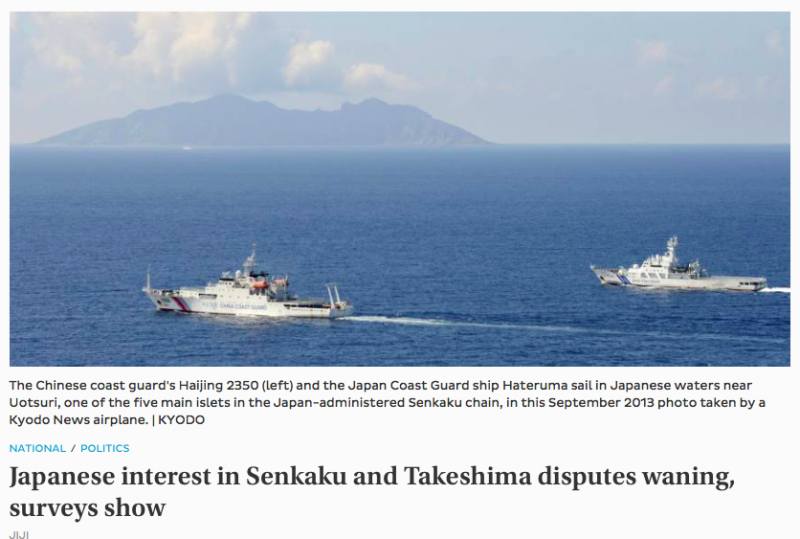 https://www.japantimes.co.jp/news/2017/10/28/national/politics-diplomacy/japanese-less-interested-senkaku-islands-takeshima-islets-government-surveys-show/#.WlNim62B28U