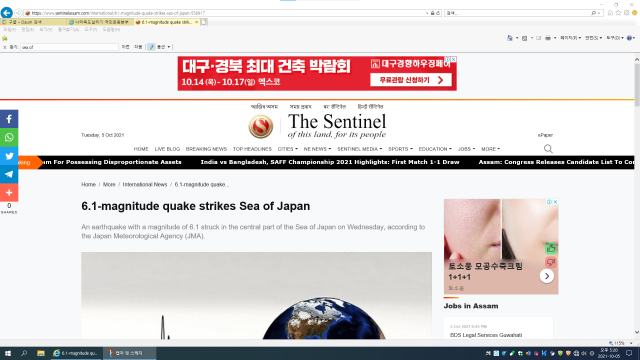 https://www.sentinelassam.com/international/61-magnitude-quake-strikes-sea-of-japan-556917