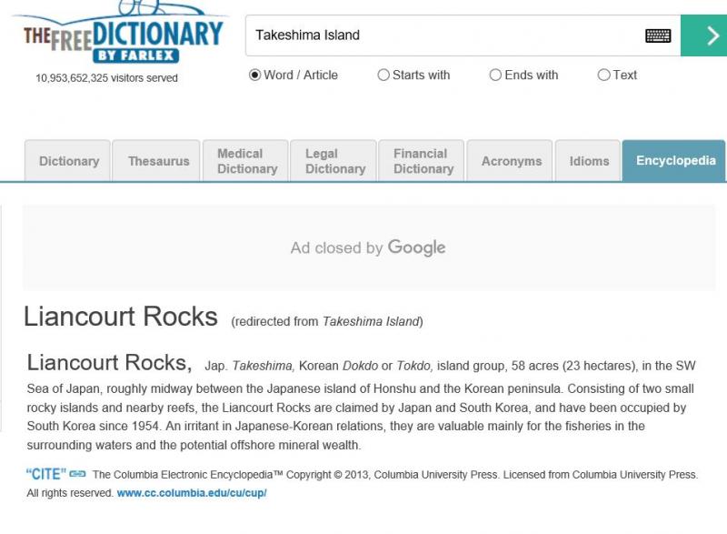 À̸§: ¹èÈ¿©°í ±èÇѳª¿À·ù¸Åü: À¥»çÀÌÆ®À̽´: µ¿ÇØ, µ¶µµ ¸íĪ¿À·ù³»¿ë: µ¿Çظ¦ Sea of Japan, µ¶µµ¸¦ Takeshima Islands·Î Ç¥±âÇÔ¸µÅ©: https://encyclopedia2.thefreedictionary.com/Takeshima+Island¿À·ù»çÀÌÆ®: https://www.thefreedictionary.com/