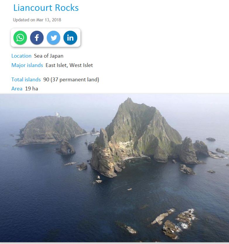 µ¶µµ¸¦ Liancourt Rocks·Î ¼Ò°³ ÇÏ¸é¼ Áö¿ª À§Ä¡¸¦ East Sea°¡ ¾Æ´Ñ Sea of JapanÀ¸·Î Ç¥ÇöÇÔ