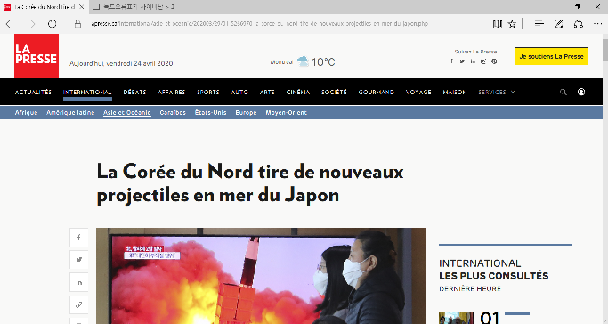 https://www.lapresse.ca/international/asie-et-oceanie/202003/29/01-5266970-la-coree-du-nord-tire-de-nouveaux-projectiles-en-mer-du-japon.php