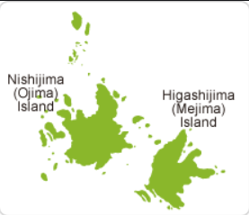 µ¶µµÀÇ µ¿µµ¿Í ¼µµ¸¦ Nishigima, Hagashigima¶ó°í Ç¥±âÇÔ.